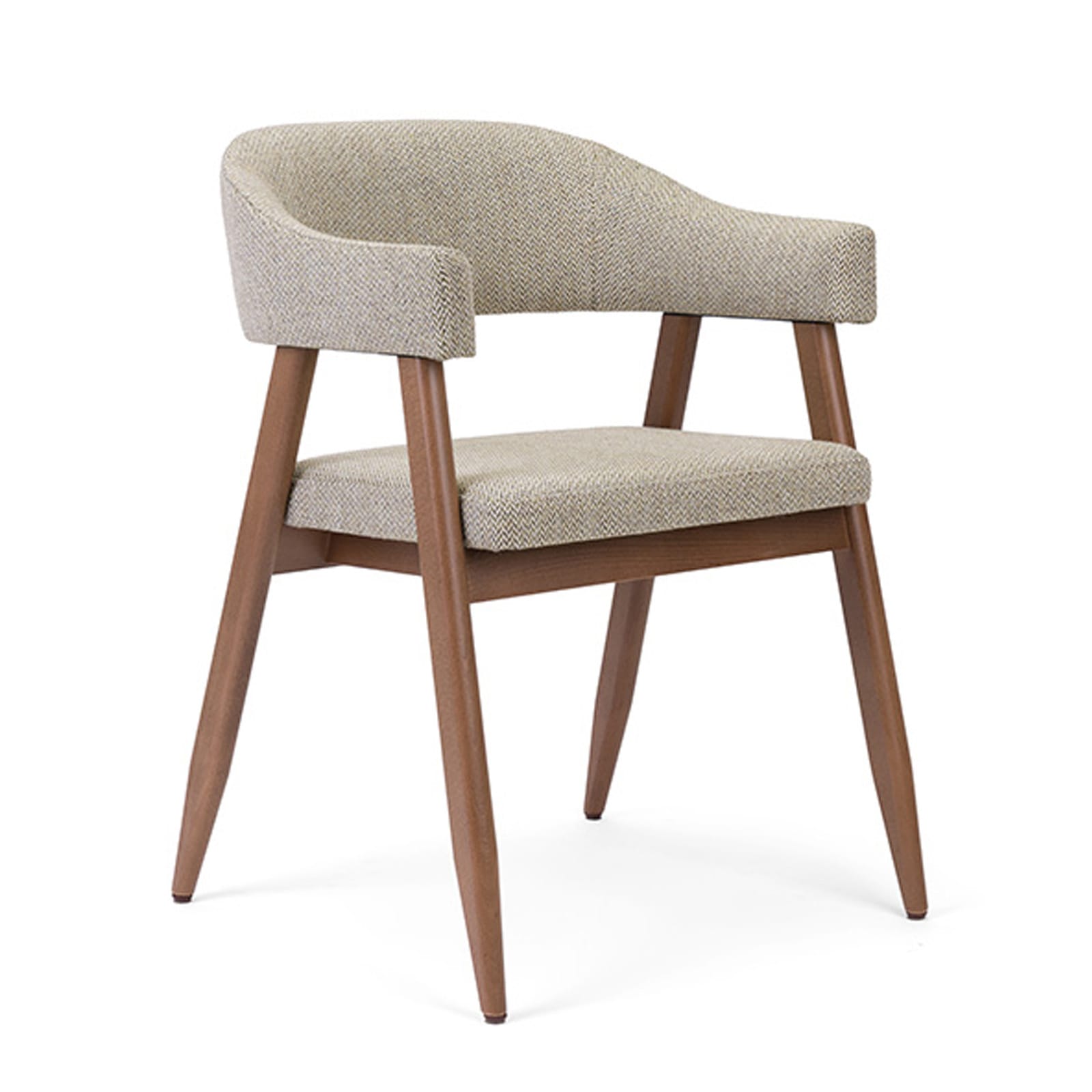 De licht gebogen rugleuning en geïntegreerde armsteunen zorgen voor een comfortabele zit. De comfortabele zitting beschikt over een comfortabel schuim in combinatie met een slijtvaste stof. Ideaal voor restaurants die comfort en uitstraling willen combineren.
